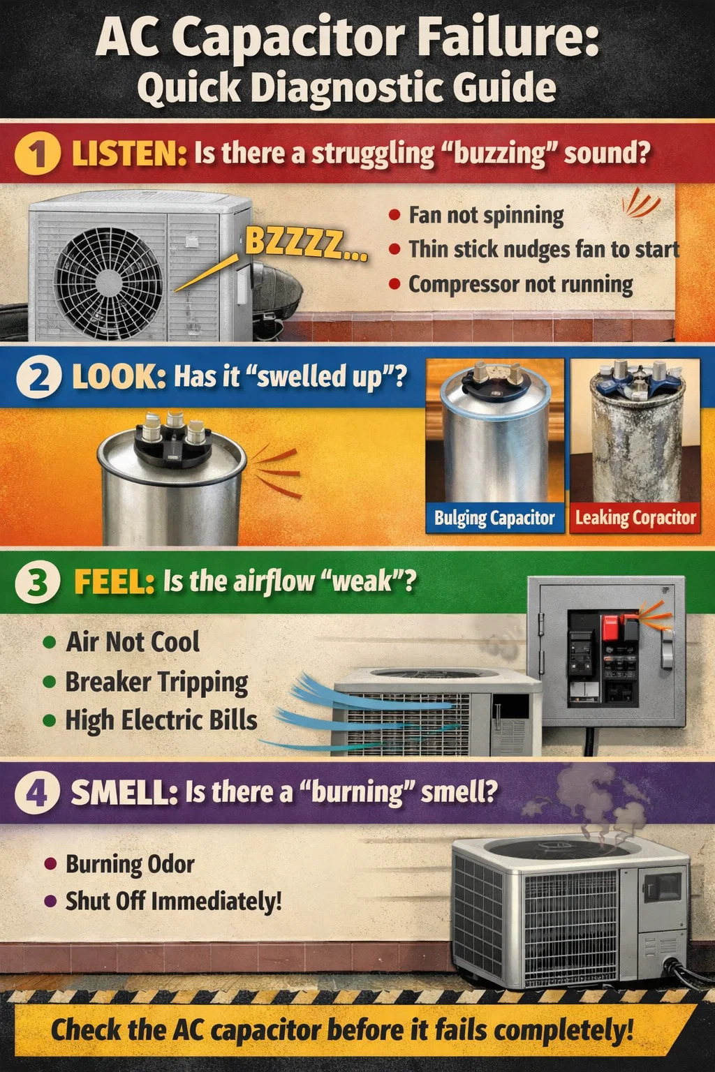 Quando il tuo condizionatore inizia a funzionare male, il Condensatore CA è spesso la parte più facile da fallire e anche la più facile da diagnosticare. Non è necessario smontare circuiti complessi; puoi determinare approssimativamente se è necessario sostituirlo utilizzando questi semplici metodi: