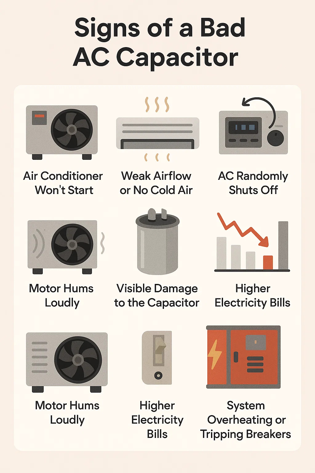 Ecco i segni comuni che un Condensatore CA potrebbe andare male o ha fallito: